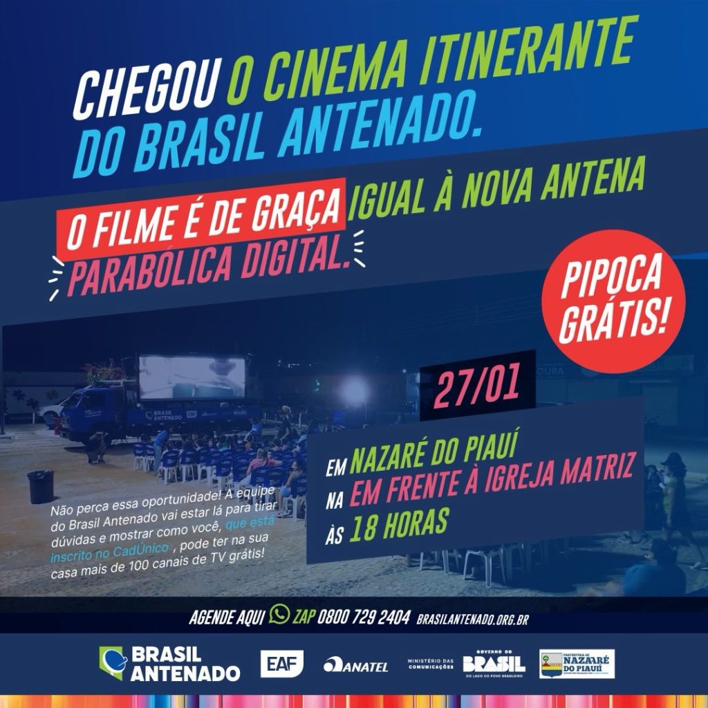 Nazaré do Piauí recebe, nesta terça-feira, dia 27 de janeiro, o Cinema Itinerante do projeto Brasil Antenado, uma iniciativa que promove acesso gratuito ao lazer, à cultura e à informação para toda a população.